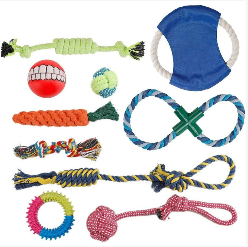 10 Pcs Dog Rope Toys Set Tough Strong Chew Knot Toys Puppy Bear Cotton Pet Toys