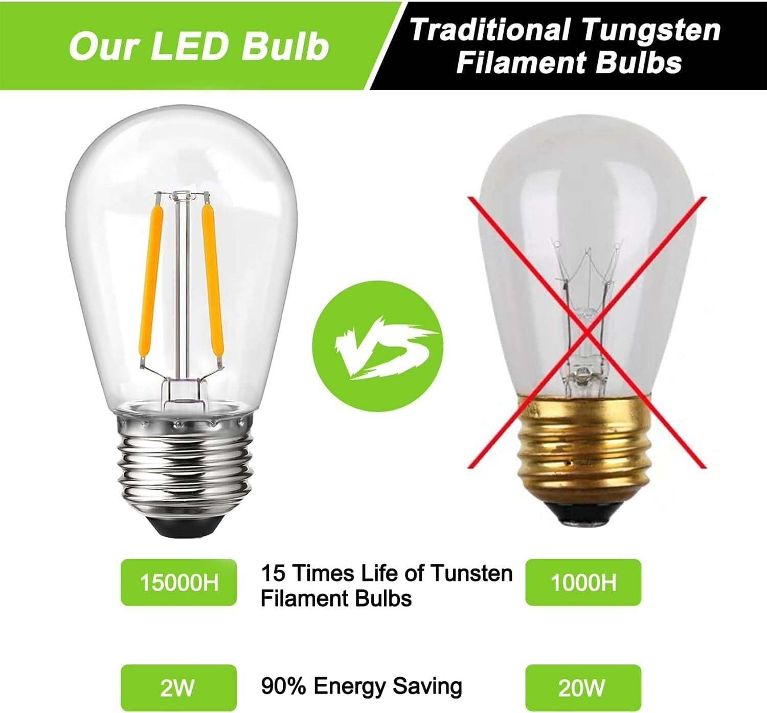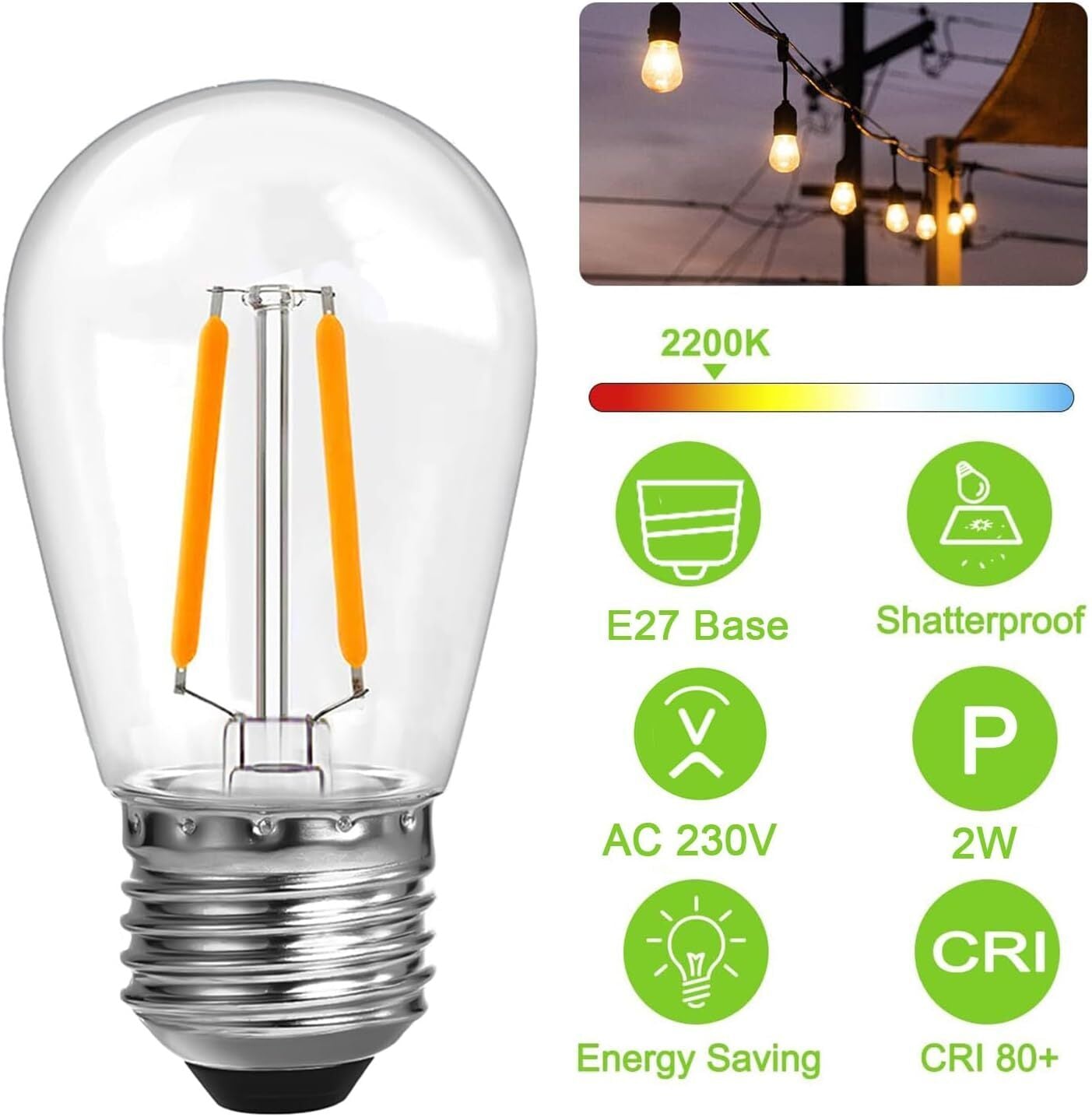 15 Pack E27 2W S14 LED Edison Screw Bulb, For Outdoor String Lights,Festival