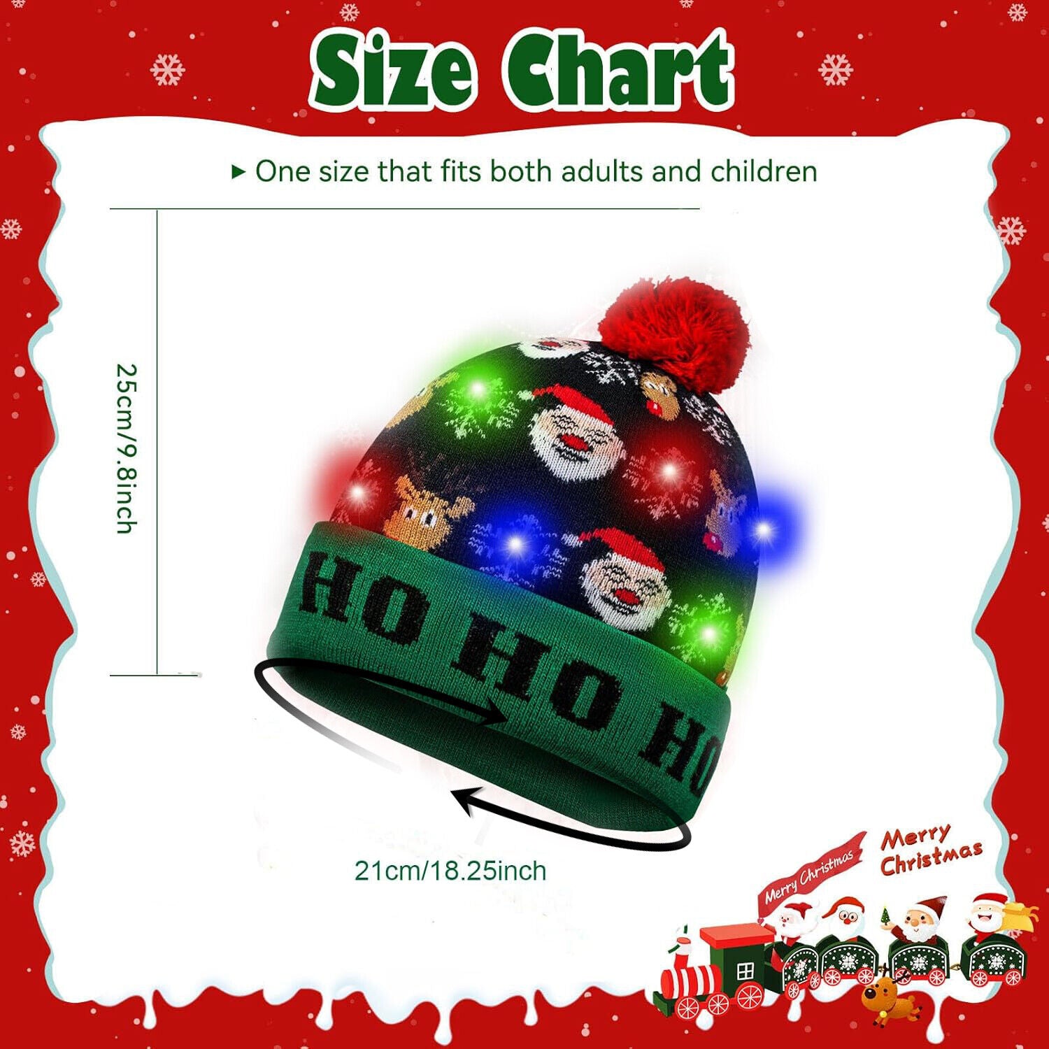 2Pcs Christmas LED Light Up Hat, Xmas Beanie Knitted Hat, 6 Colorful LED Unisex