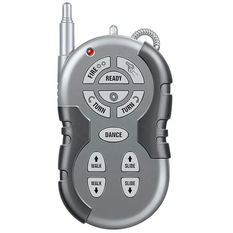 - Super fun remote control robot with a variety of cool features. When you turn him on he responds with "Greetings Master I await your command"!