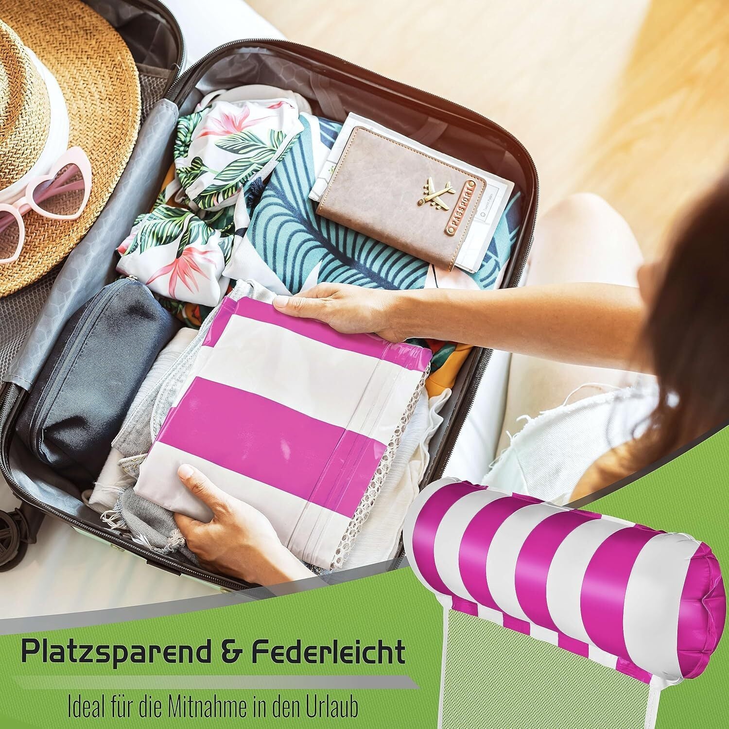 Lightweight and compact: the swimming chair is lightweight and compact, making it ideal for travelling. Whether in your own pool, at the lake, in the swimming pool or even on holiday - it fits folded into any bag and can be inflated quickly and easily.